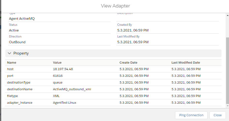 Configure Agent RabbitMQ CSV Inbound Adapter: you need to enter adapter properties base on system requirement and Select Connection Destination (Example:Agent LINUX).