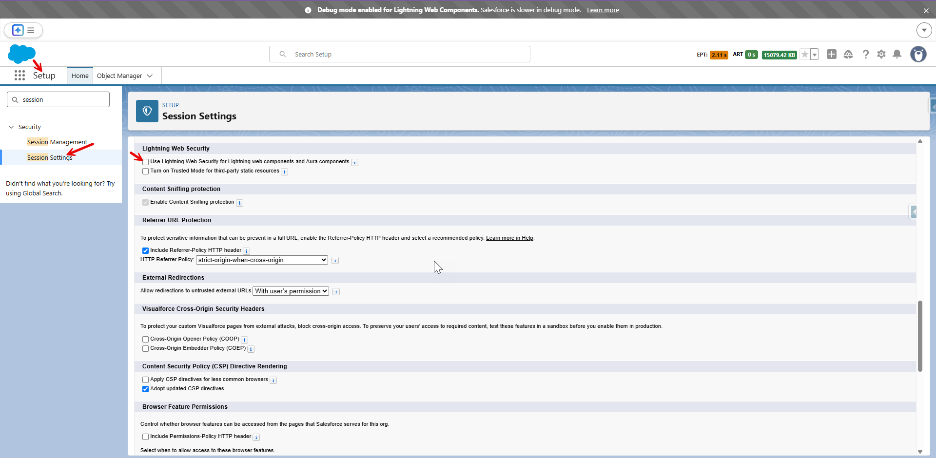 => Setup => Session Settings under Security => unchecked “Use Lightning Web Security for Lightning web components and Aura components” option => Click Save Button