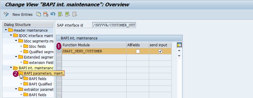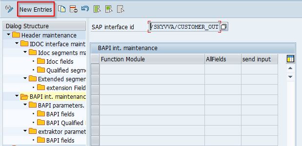 To do so select the created Interface and double click on BAPI int. maintenance on the left side.