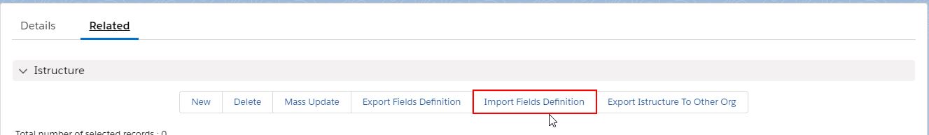Now, select the Import Field definition to upload the XML file, which we created in step 3.