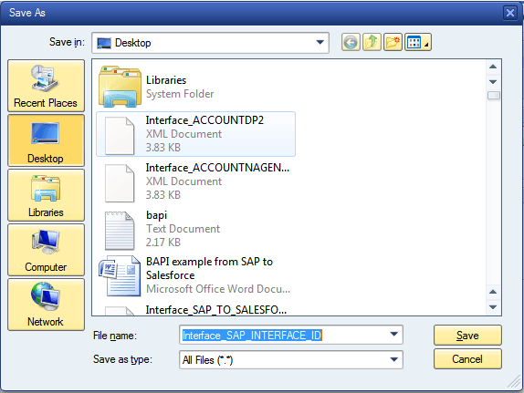 Execute to save the generated file in the desired path. The file generated is in XML format, which will be Salesforce to give the SAP fields, which are required to map.