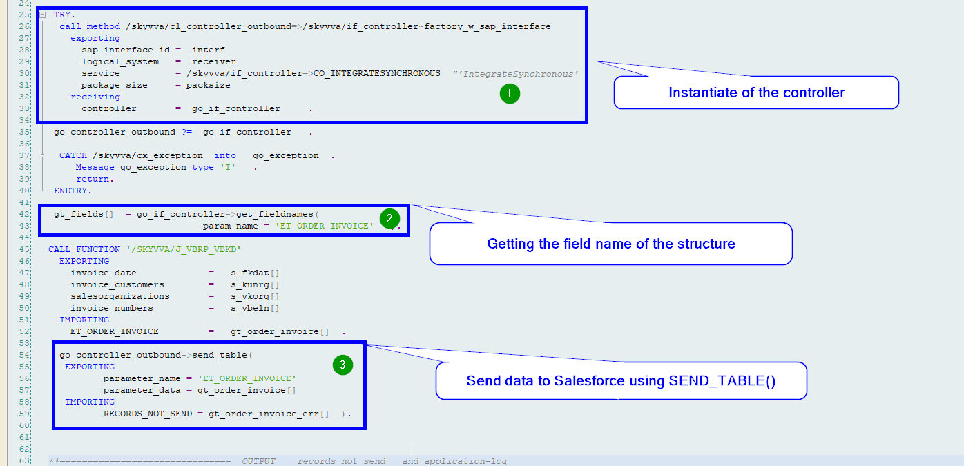 Purpose: Many a times we have to send the data from SAP to Salesforce either through some Background job which runs weekly or monthly or whenever there will be any change made by the user in SAP so that both the system’s record will be in sync. To achieve this SKYVVA propose to use multi-itab functionality of Skyvva, as part of multi-itab functionality we have provided 2 methods to send the data: /SKYVVA/CL_CONTROLLER_OUTBOUND~SEND_TABLE() & /SKYVVA/CL_CONTROLLER_OUTBOUND~SEND_TABLE_W_ALL_FIELDS()