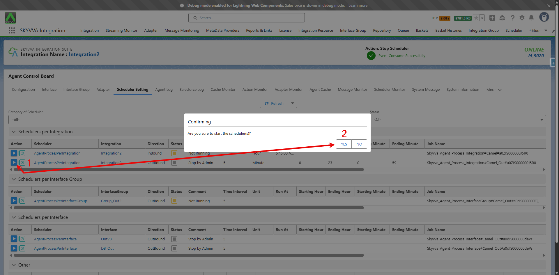 - Click the start scheduler icon, then press the ‘Yes’ button to confirm to start this scheduler.
