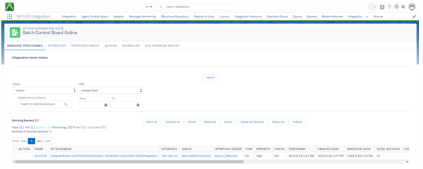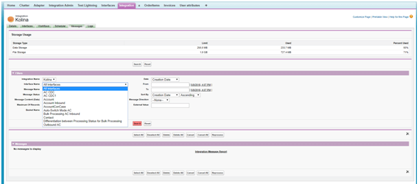 Login to Salesforce and enter Integration => Message Monitoring Board tab => Select Interface Name => click search button